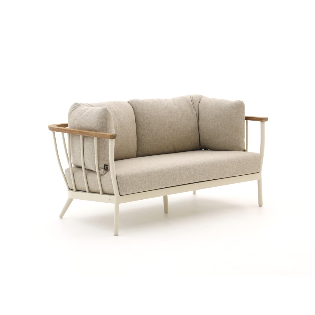Pevný hliníkový rám v barvě „Oyster“ dodává pohovce moderní, ale vzdušný vzhled. Nízká hmotnost usnadňuje manipulaci, a přesto zůstává konstrukce stabilní a pevná. Přírodní teakové područky dodávají teplý, přírodní kontrast a zároveň působí prémiově. Sofu tak snadno sladíte jak s minimalistickými, tak s boho nebo skandinávskými venkovními styly.
