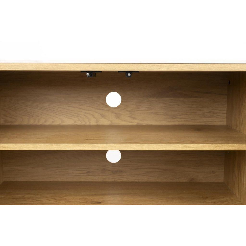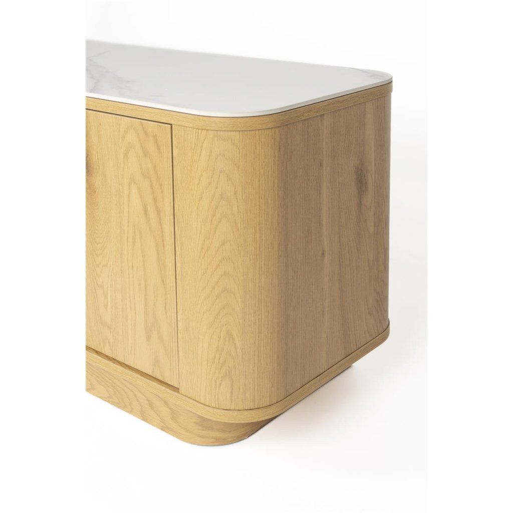Zaoblené hrany a jemné detaily dodávají nábytku měkký a sofistikovaný vzhled. Nízké provedení působí vzdušně a zároveň poskytuje stabilní základ pro televizor i další zařízení.