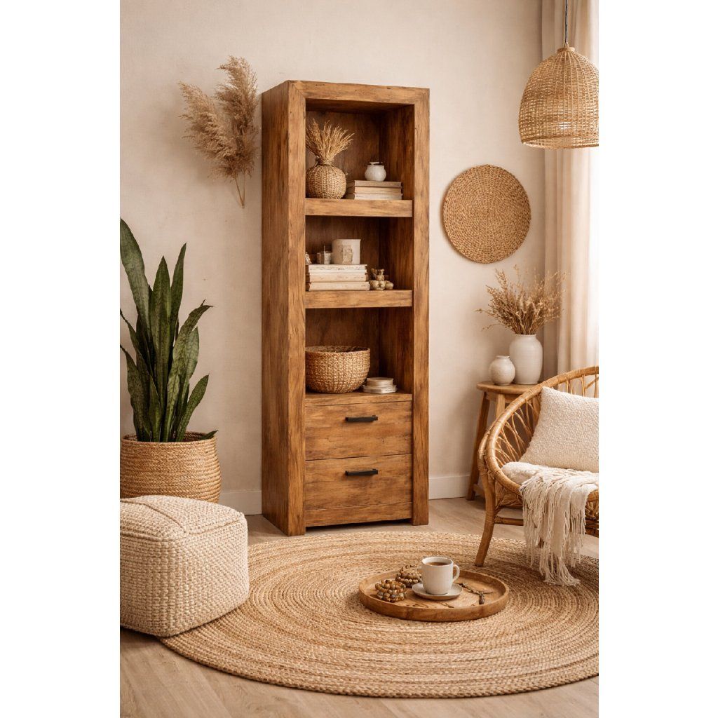 Knihovna zaujme svou robustní konstrukcí a čistými liniemi, které působí elegantně a nadčasově. Díky univerzálnímu designu se snadno začlení do různých typů interiérů – od rustikálních přes industriální až po moderní či skandinávské.