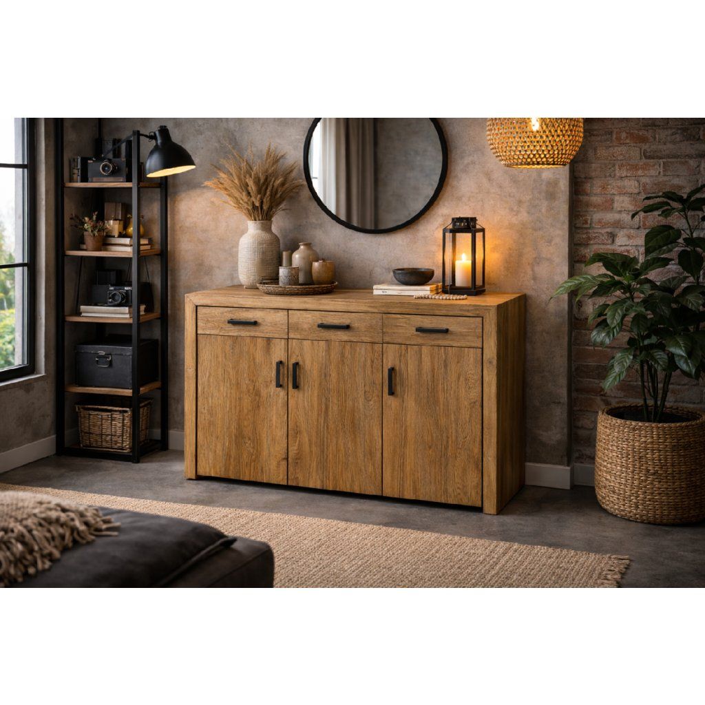 Díky variabilitě rozměrů i nadčasovému designu se komoda hodí do obývacího pokoje, ložnice i předsíně. Nabízí dostatek úložného prostoru a zároveň působí jako výrazný designový prvek.
