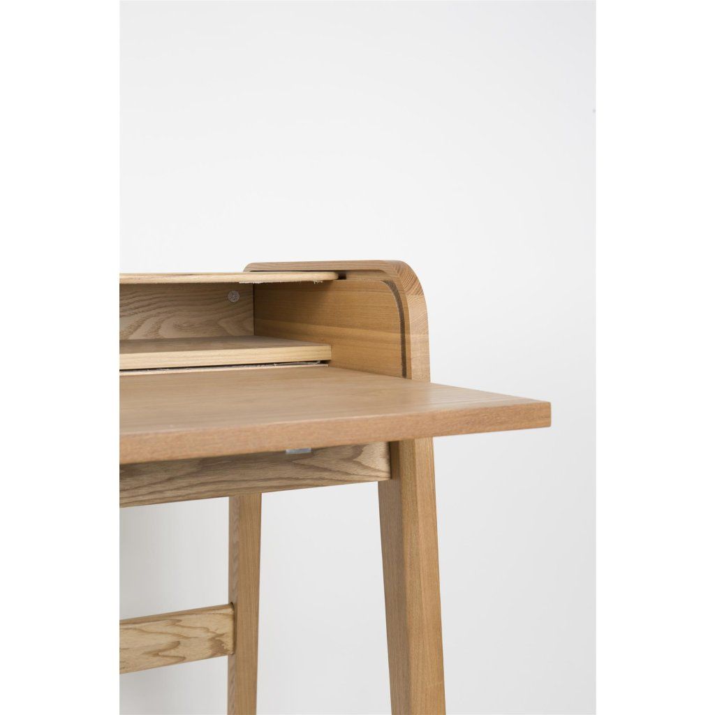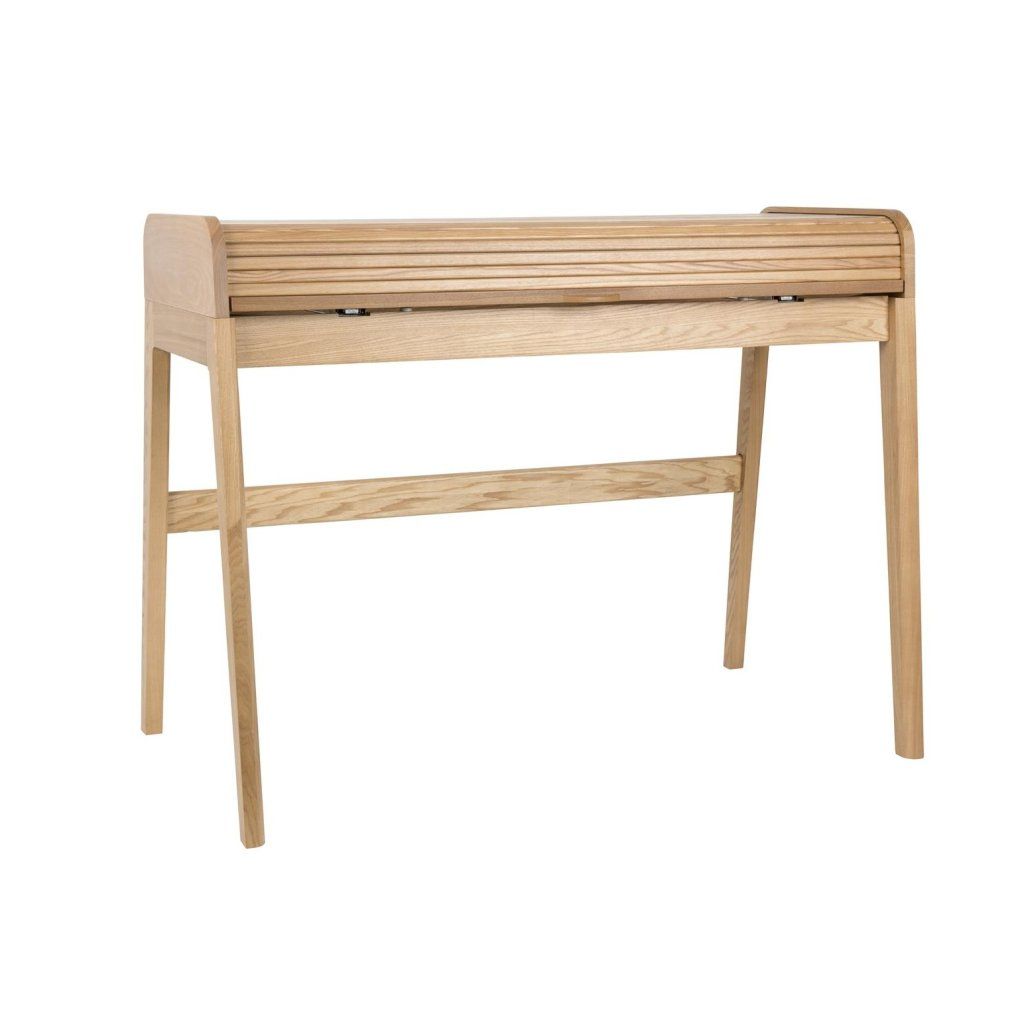 Hlavním prvkem je posuvná horní deska, která odhalí praktický úložný prostor pro dokumenty, psací potřeby i další drobnosti. Díky tomu můžete po práci vše jednoduše uklidit, desku zavřít a stůl opět působí čistě a minimalisticky – ideální řešení pro moderní domácnosti.