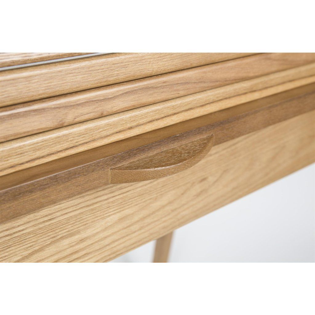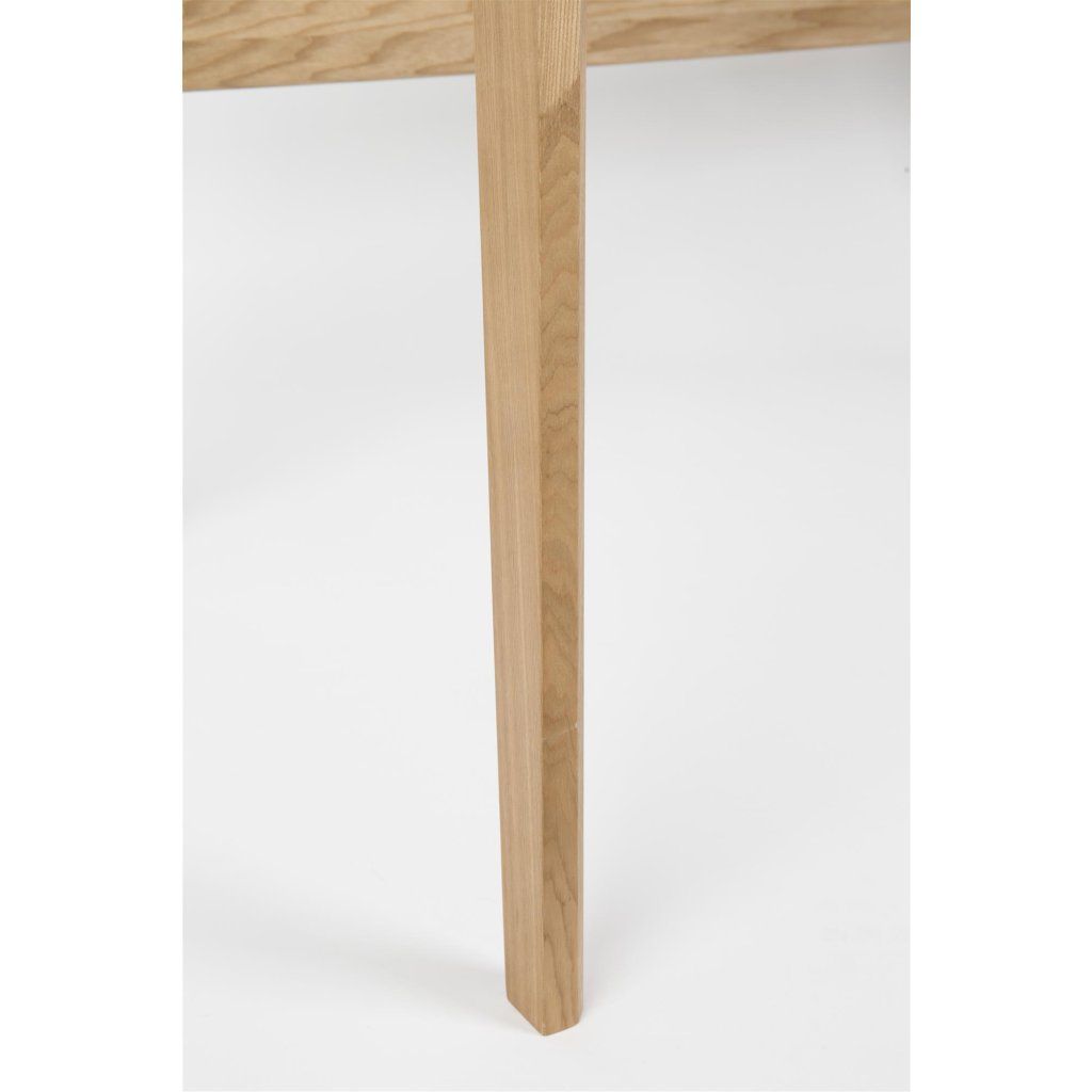 Stůl je vyroben z kvalitního jasanového dřeva a jasanové dýhy, což zajišťuje pevnost, stabilitu a dlouhou životnost. Přírodní odstín dodává nábytku lehkost a snadno se kombinuje s různými styly interiéru.