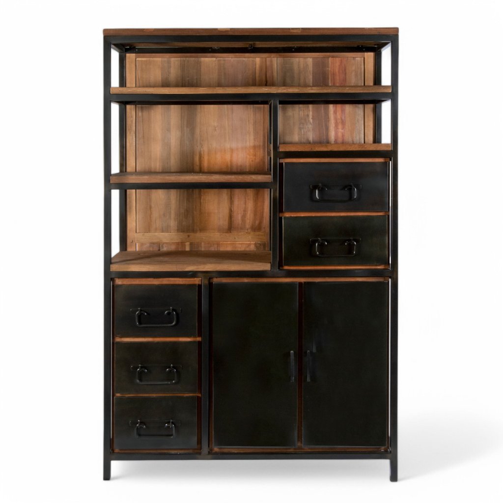Knihovna Chelsea II je skvělým doplňkem pro všechny, kdo hledají nábytek s charakterem a dlouhou životností. Tento model vznikl spojením robustní kovové konstrukce a starého recyklovaného teakového dřeva s lehce vydrásaným povrchem. Díky tomu každý kus vyzařuje originální rustikální kouzlo a zároveň si zachovává moderní industriální nádech. Kombinace těchto materiálů dává knihovně pevnost, stabilitu a zároveň estetickou hodnotu.