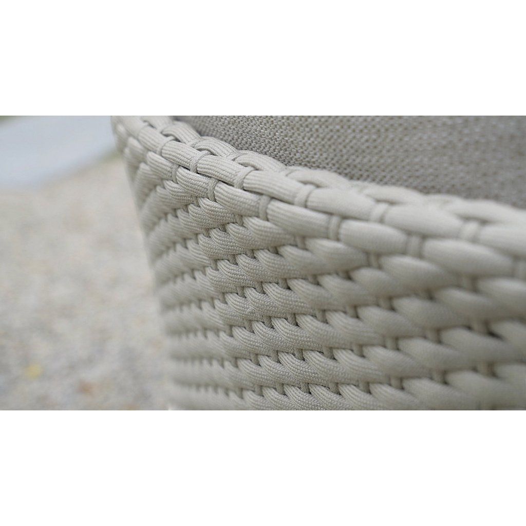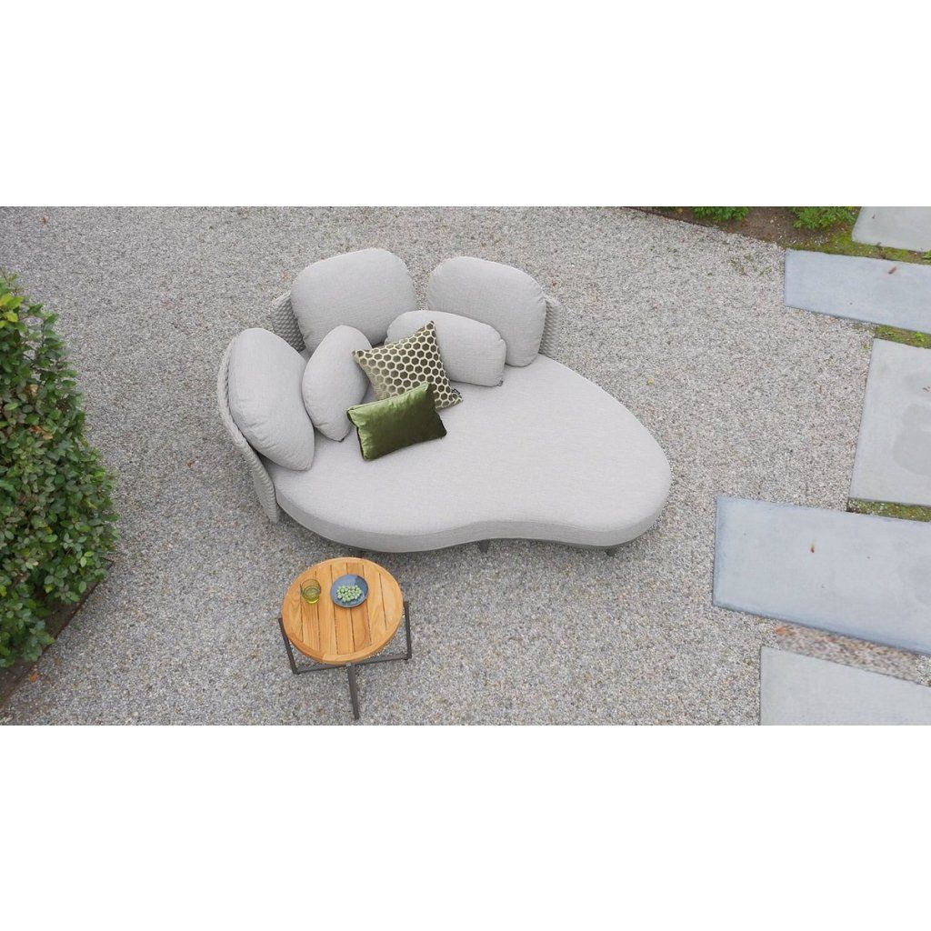 Charakteristickým prvkem jsou zaoblené opěrky, které obepínají celý daybed a vytvářejí pocit útulnosti a soukromí. Výplet z materiálu Flat Rope v odstínu Mid Grey dodává konstrukci moderní vzhled a zároveň zajišťuje vysokou pevnost a odolnost. Tento detail podtrhuje exkluzivní design a přináší vizuální lehkost.