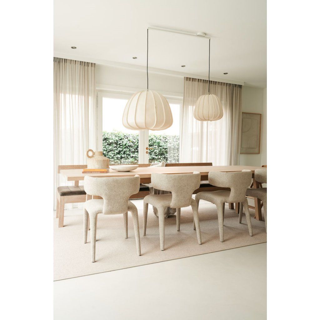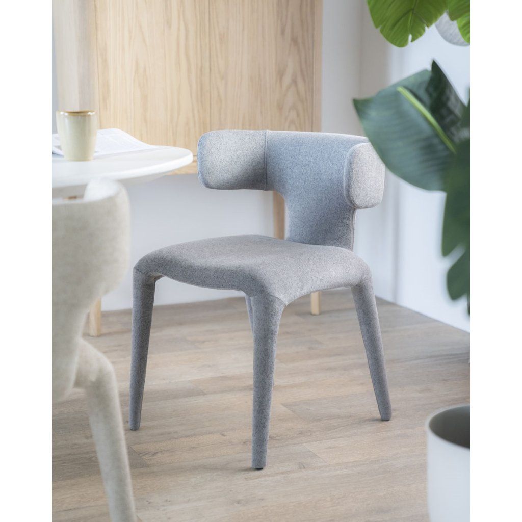 Charakteristickým prvkem židle je její celočalouněné provedení včetně nohou, které vytváří jednotný a sofistikovaný vzhled. Tento design působí velmi elegantně a zároveň přináší vyšší komfort při používání.
