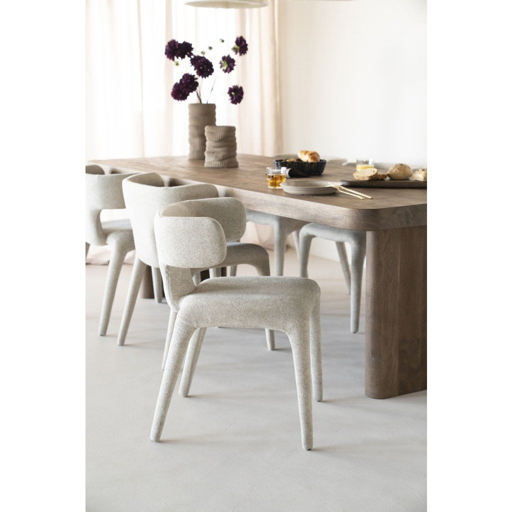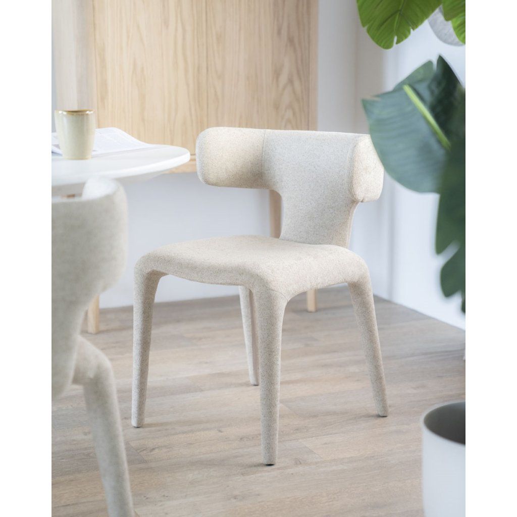 Sedák i opěradlo jsou potaženy kvalitní textilií, která je příjemná na dotek a vhodná pro každodenní používání. Ergonomické tvarování zajišťuje pohodlné sezení i při delším stolování nebo práci.