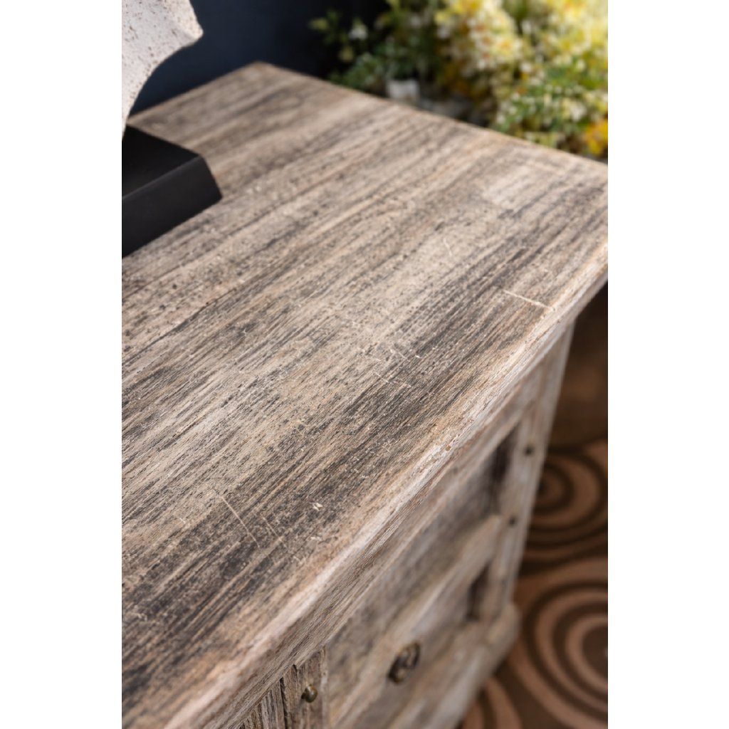 Komoda je vyrobena z kvalitního mangového dřeva, které je ceněné pro svou pevnost, dlouhou životnost a jedinečnou kresbu. Každý kus dřeva má odlišnou strukturu a barevné odstíny, díky čemuž je každá komoda originál. Tento přírodní materiál přináší do interiéru teplo a autenticitu, kterou nelze nahradit sériovou výrobou.