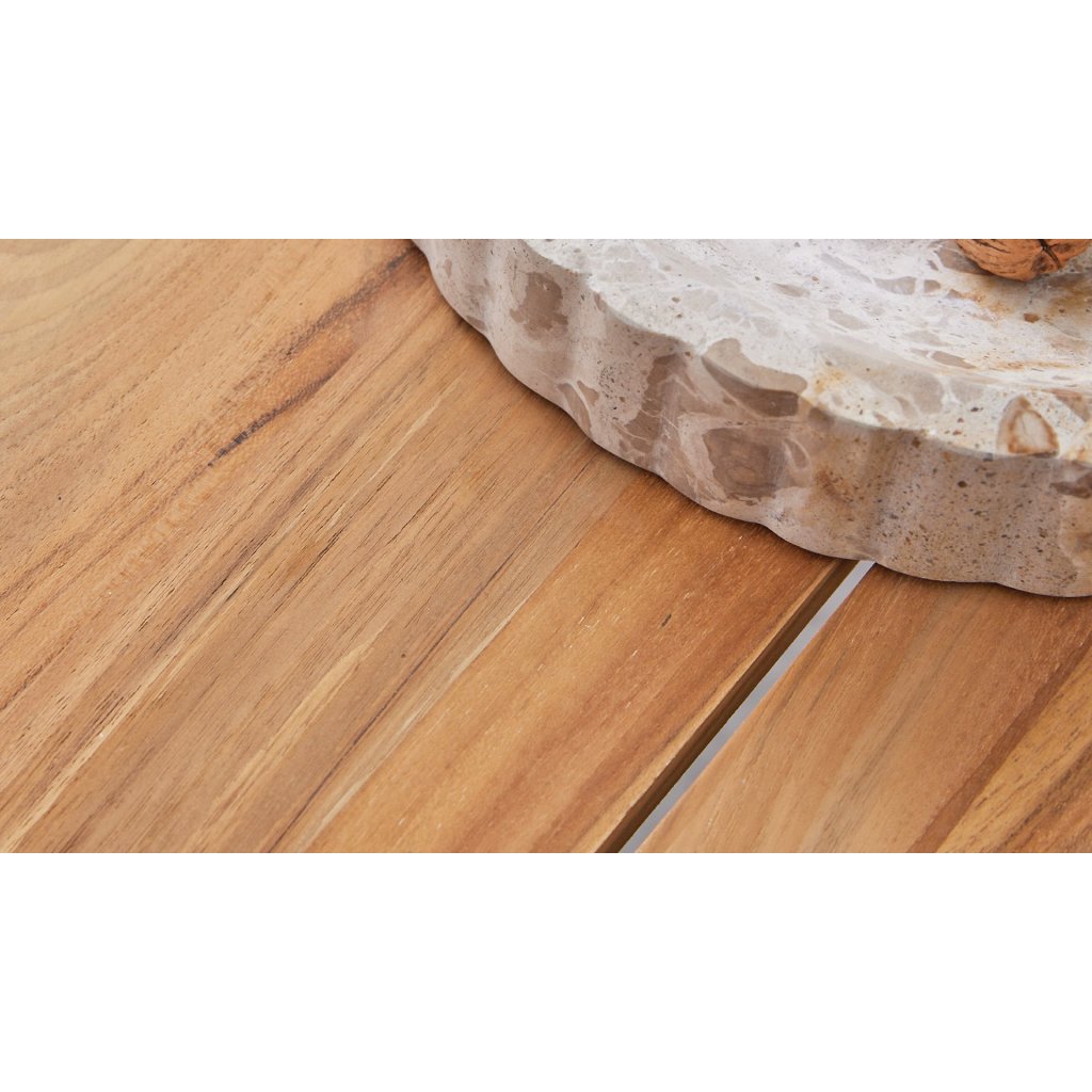 Konstrukci tvoří kvalitní teakového dřevo SVLK v přírodním odstínu, které je známé svou pevností, dlouhou životností a přirozenou odolností vůči povětrnostním vlivům. Teak je ideální volbou pro venkovní nábytek, protože si zachovává svůj vzhled i funkčnost při každodenním používání v exteriéru.