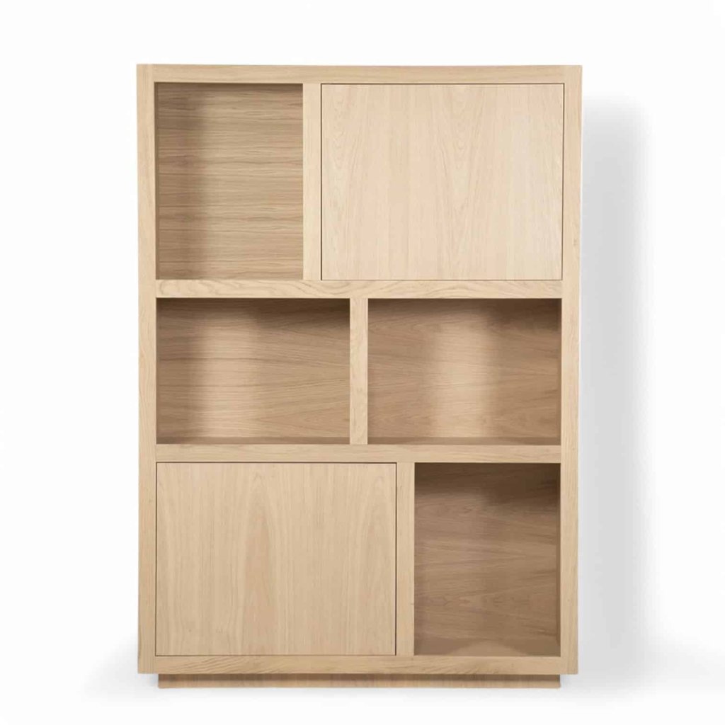 Tato knihovna je ideální volbou do obývacího pokoje, pracovny, jídelny nebo knihovny, kde se stane nejen funkčním prvkem, ale i estetickým centrem prostoru. Kombinuje uzavřený úložný prostor ve formě čtyř dvířek a dvou šuplíků s otevřenými policemi, které nabízí dostatek místa pro knihy, dekorace nebo osobní předměty.