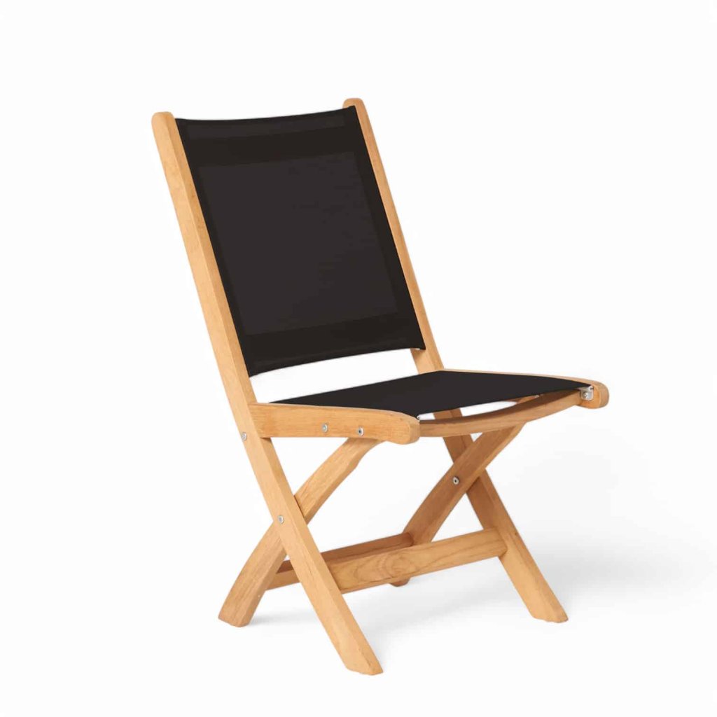Sedák a opěradlo tvoří špičkový materiál Textilene© – extrémně odolná tkanina navržená pro venkovní použití. Je prodyšná, rychleschnoucí, odolná proti roztržení i UV záření, což zajišťuje pohodlné sezení bez nutnosti podsedáku.
