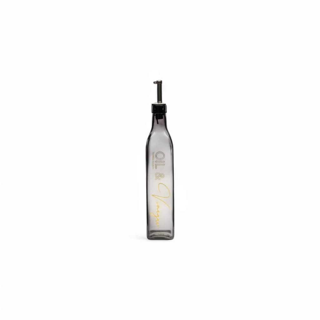 Tělo láhve tvoří kouřové sklo, které působí nadčasově a decentně zároveň. Neutrální tón materiálu ladí s různými styly interiéru – od minimalistického po rustikální. Výrazným detailem je zlatý nápis „Oil & Vinegar“, který dodává láhvi exkluzivní vzhled bez rušivých prvků. Celkový dojem podtrhuje korková zátka s nalévacím uzávěrem, která zajišťuje přesné a hygienické dávkování obou ingrediencí.