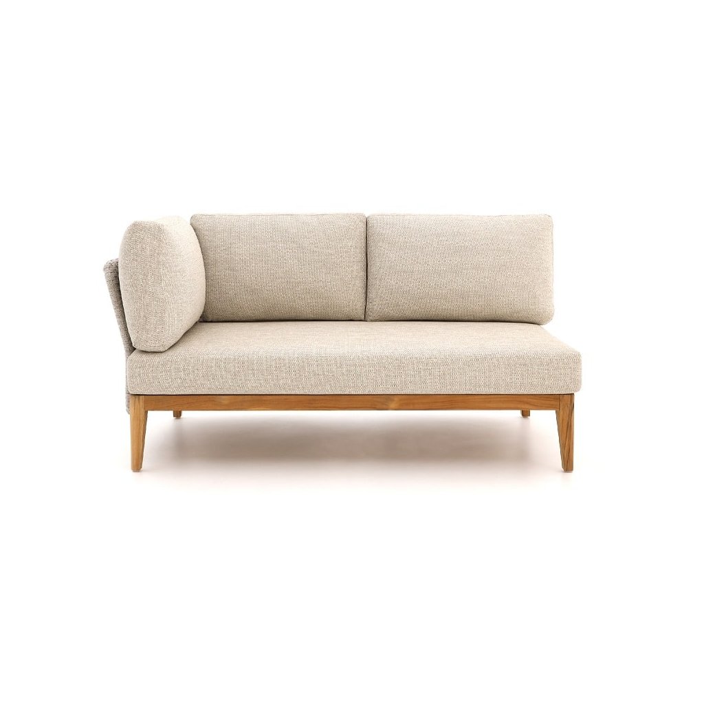 Pohovka Lisa představuje dokonalou kombinaci moderního designu, prvotřídního pohodlí a promyšlené funkčnosti. Pravá část této lounge pohovky stojí na pevném teakovém základu s jemně zkosenými nohami, které dodávají celému kusu nábytku lehkost a stabilitu zároveň. Tento kvalitní základ zaručuje dlouhou životnost a spolehlivost i při každodenním používání.