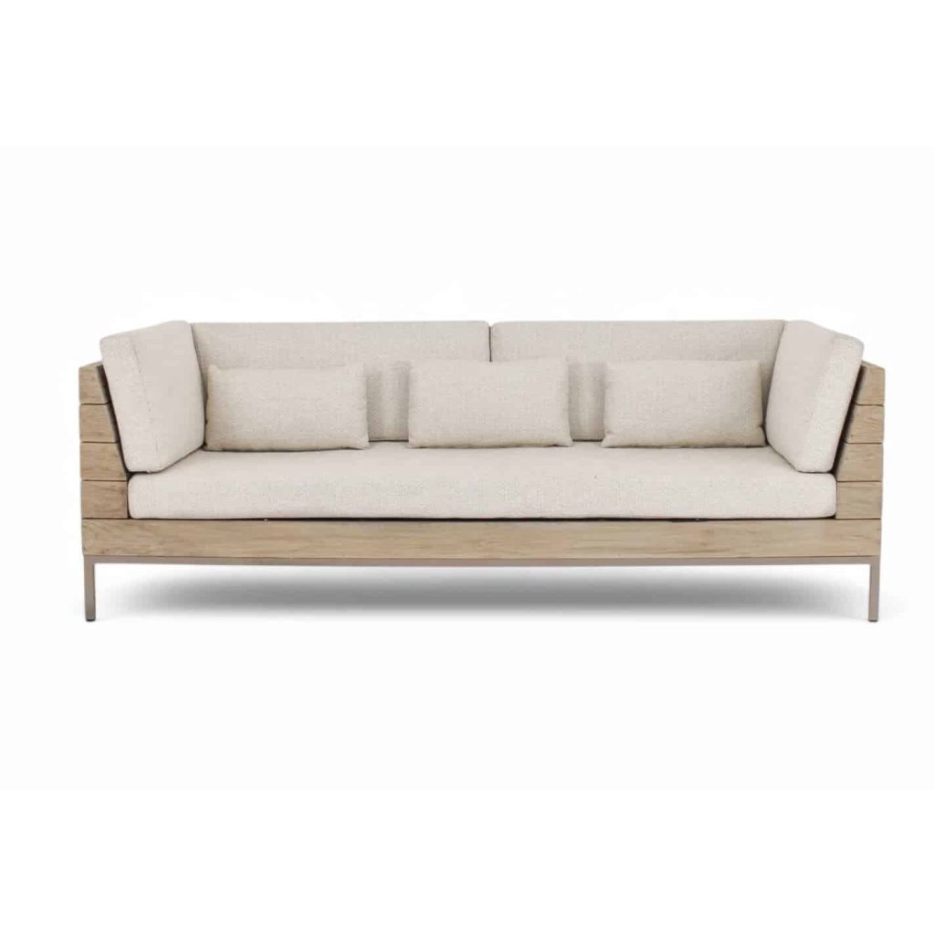 Robustní, ale vizuálně lehká konstrukce z teakového dřeva s úpravou Coastal podtrhuje sofistikovaný charakter celé kolekce. Tato úprava dodává dřevu jemný, světlejší tón, který působí svěže, přirozeně a harmonicky ladí s okolní zelení i moderní architekturou.
