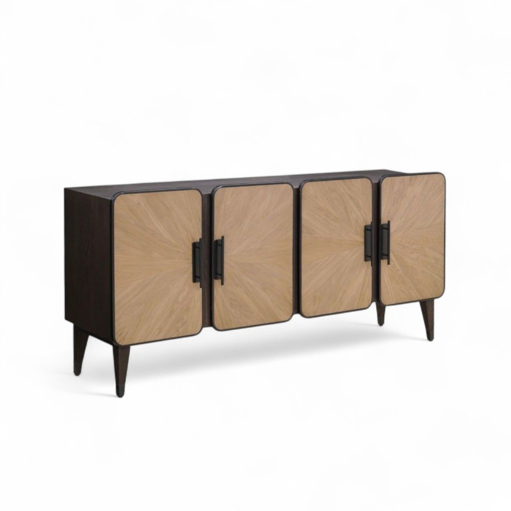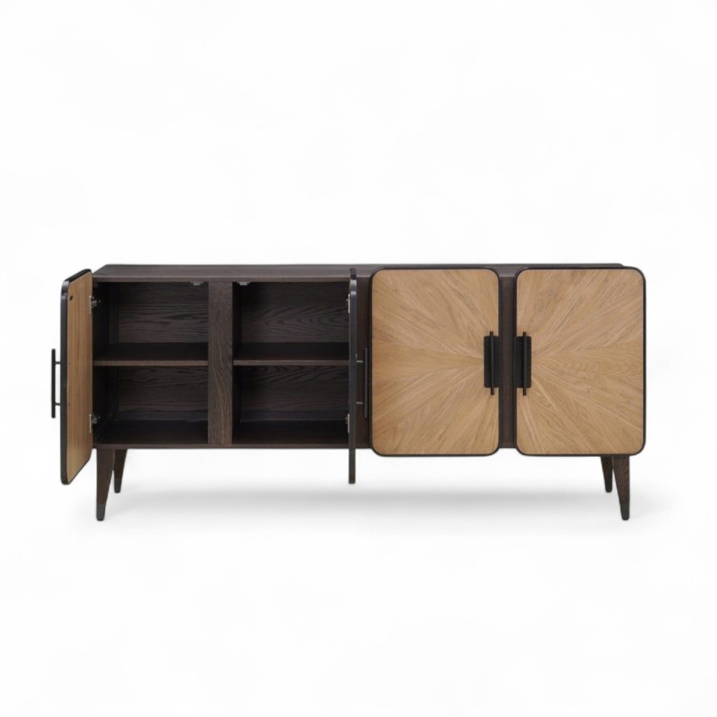 Tato čtyřdveřová komoda nabízí uvnitř prakticky řešený úložný prostor. Každá ze čtyř částí obsahuje vnitřní polici, která pomáhá efektivně uspořádat předměty – ať už jde o nádobí, textil, dokumenty nebo dekorace. Komoda Merope tak není jen stylovým, ale i velmi funkčním doplňkem do vašeho domova.