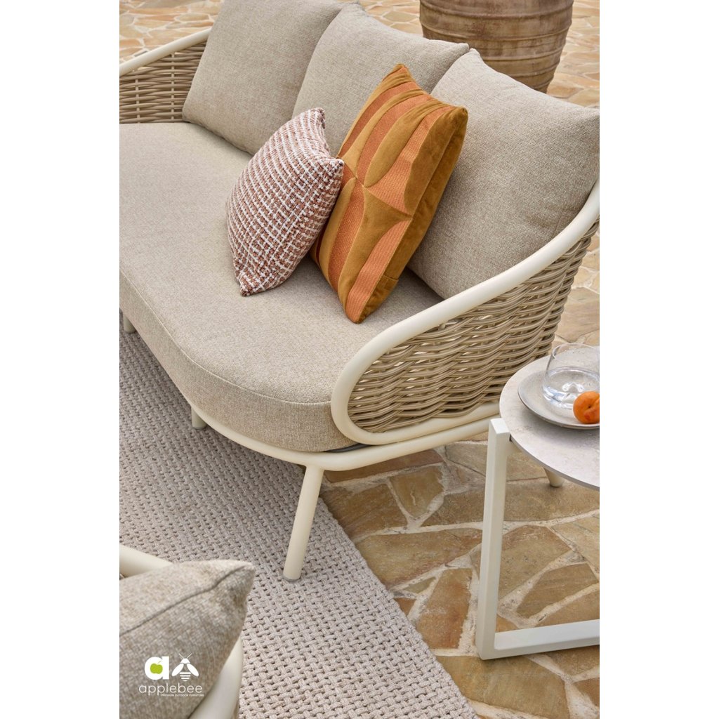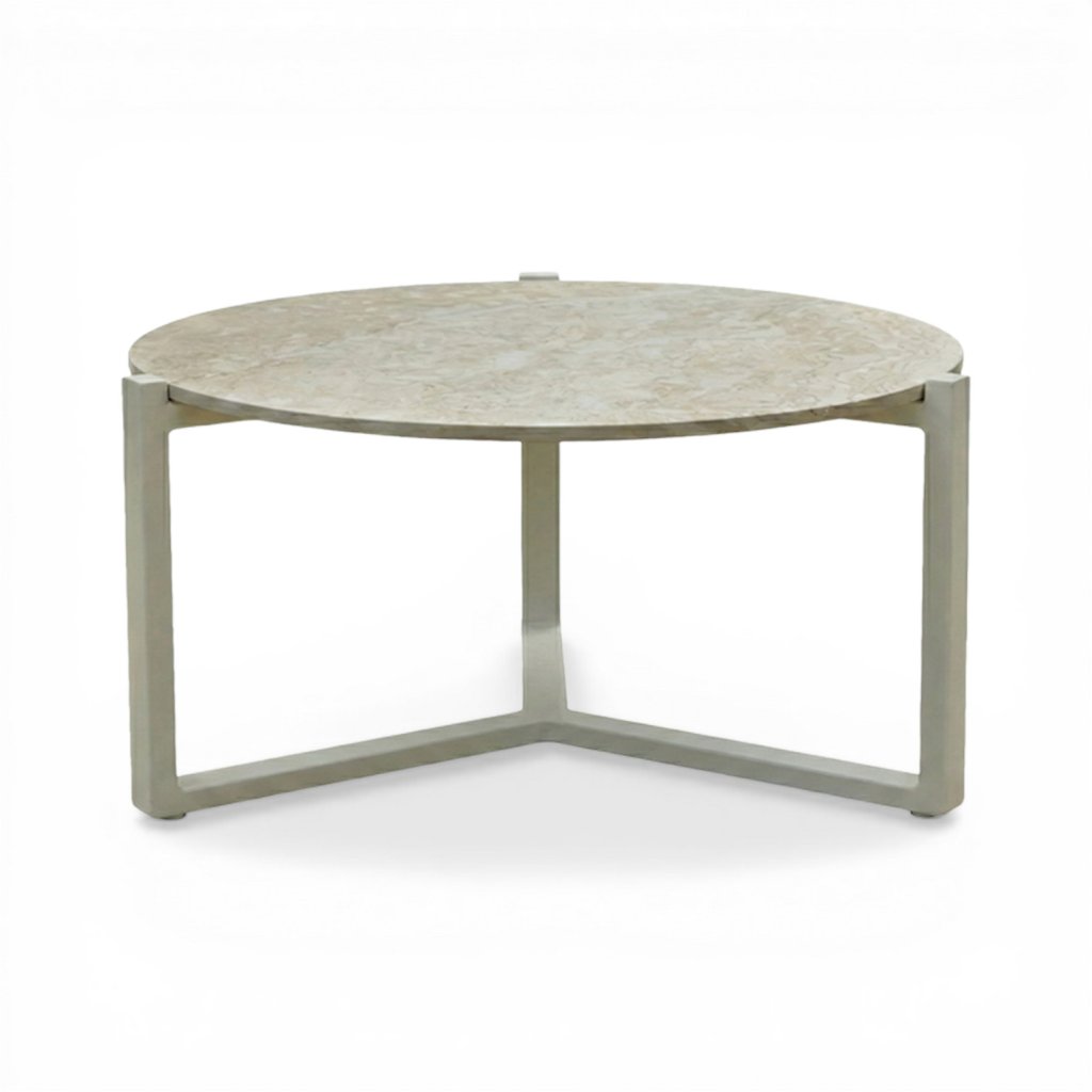 Konstrukci stolku tvoří pevný hliníkový rám s práškovým lakováním v odstínu Oyster. Hliník je lehký, stabilní a vysoce odolný vůči povětrnostním vlivům, což zajišťuje dlouhou životnost i při venkovním používání. Třínohý podstavec dodává stolku stabilitu a zároveň vytváří moderní, vzdušný vzhled.