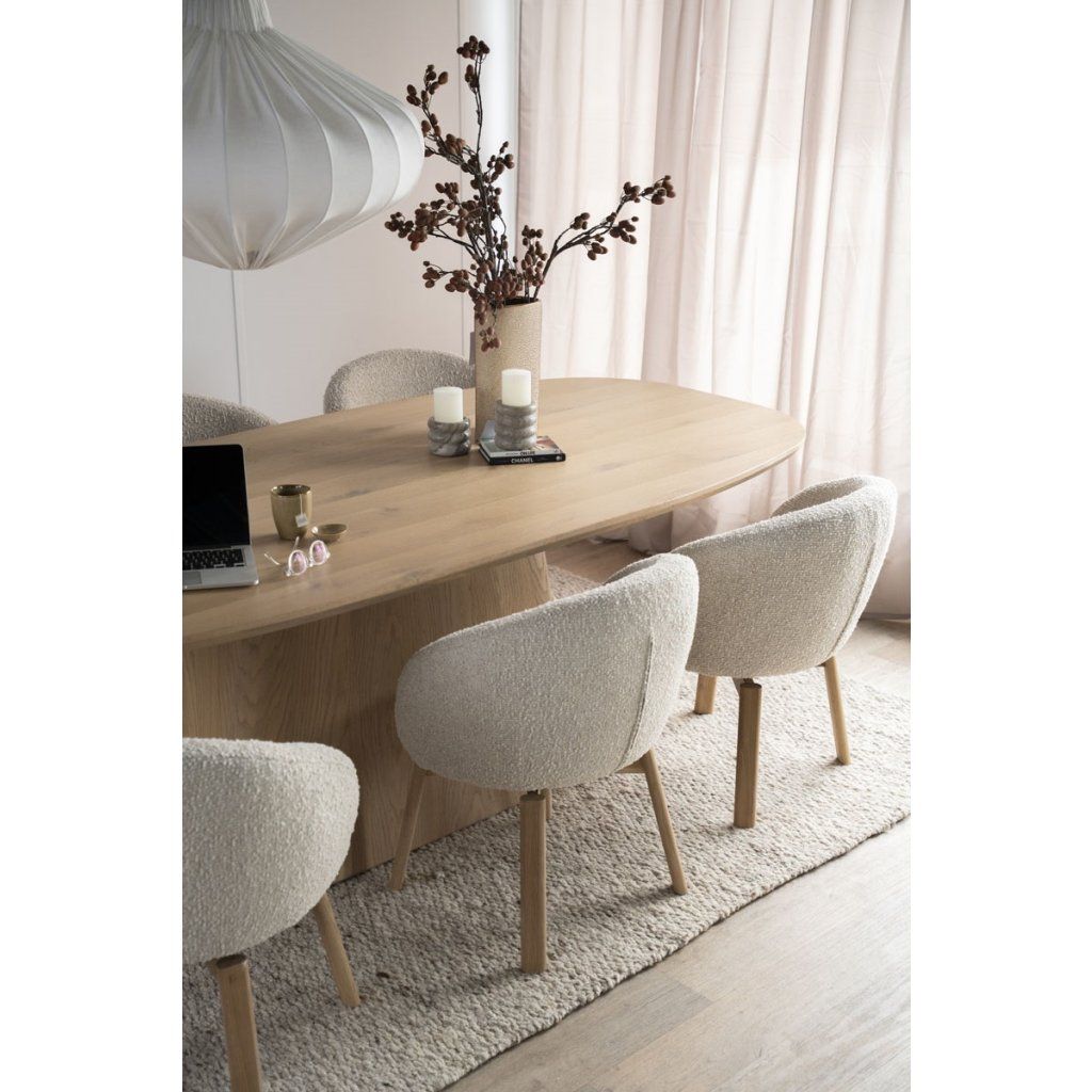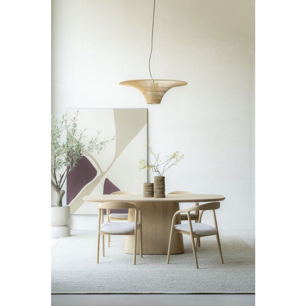 Jídelní stůl Nola přináší do interiéru harmonii organických tvarů, kvalitního materiálu a nadčasového designu. Jeho jemně zaoblené linie působí přirozeně a elegantně, díky čemuž se stává výrazným, ale zároveň vyváženým prvkem každé jídelny.