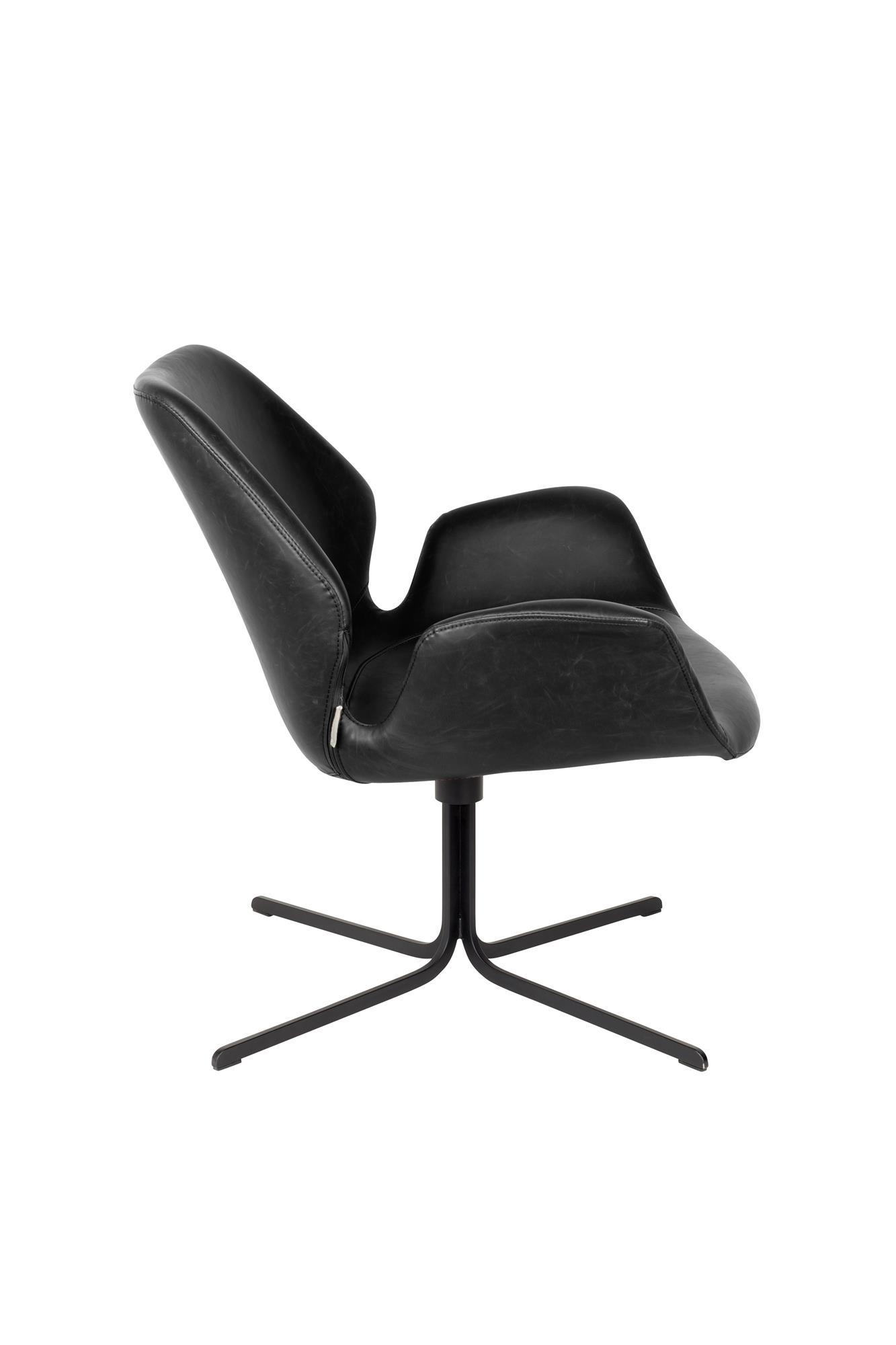 Základ tvoří pevná kovová konstrukce, která zajišťuje stabilitu, pevnost a dlouhou životnost. Její černé provedení podtrhuje minimalistický vzhled křesla a skvěle ladí s jemně strukturovaným povrchem sedáku a opěradla. Povrchová úprava z materiálu imitujícího broušenou kůži vypadá luxusně, zároveň je příjemná na dotek a praktická na údržbu.