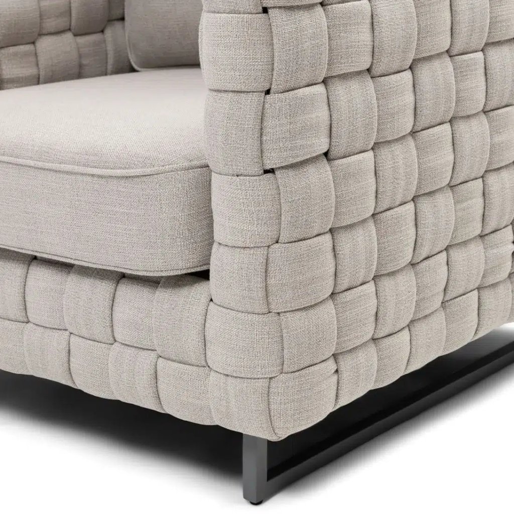 Pohodlné, bohatě polstrované sedáky a opěrky vás příjemně obejmou a vytvoří dokonalé místo pro relaxaci. Kombinace strukturovaného textilu s přírodním dřevem vytváří zajímavý kontrast, který podtrhuje přírodní a zároveň elegantní vzhled. Křeslo skvěle vynikne jako solitér v obýváku, ložnici nebo třeba ve čtecím koutku.