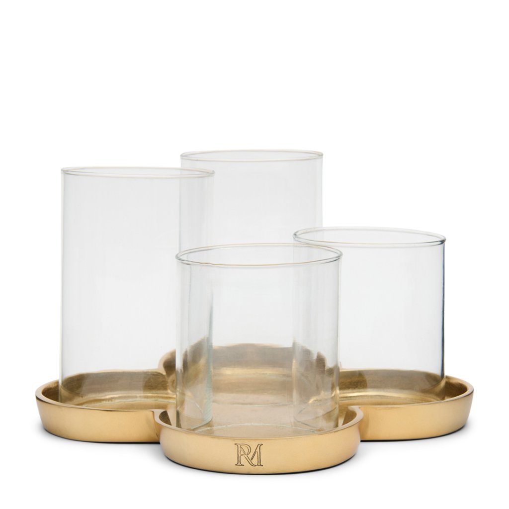 Větrná lampa Lionas je dokonalým spojením luxusní elegance a praktické funkčnosti. Zlatý podnos působí nádherným dojmem a dodává celému kousku na výjimečnosti, zatímco čtyři skleněné trubice krásně odrážejí světlo a rozšiřují hřejivou záři do celé místnosti.