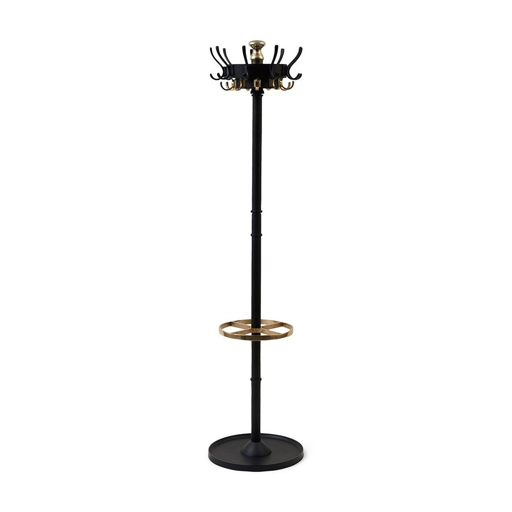Tento výjimečný věšák je ručně vyráběný z černého práškově lakovaného hliníku, což mu zajišťuje nejen moderní vzhled, ale i dlouhou životnost. Jeho promyšlený design nabízí dostatek místa pro zavěšení kabátů celé rodiny, a co více – díky chytrému řešení do něj můžete uložit i deštníky.