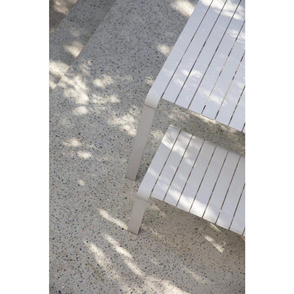 Bílé provedení dodává lavici svěží a čistý vzhled, který perfektně zapadne do exteriéru a snadno se kombinuje s dalšími prvky kolekce.